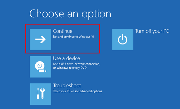 - Select the account and enter your credentials. * Select Reset to reboot the system. * Once your Windows system is up select Continue to proceed into Windows.