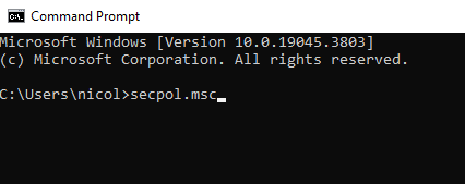 - Type secpol.msc command and press Enter.