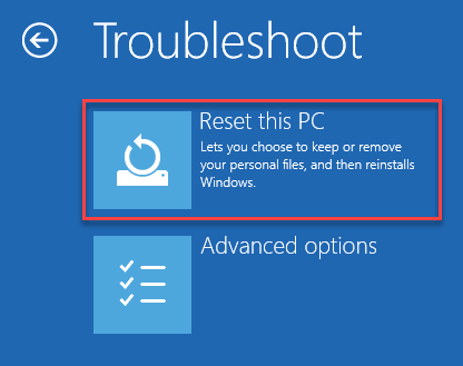 - Click the Reset This PC option.