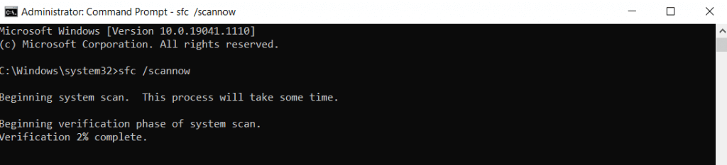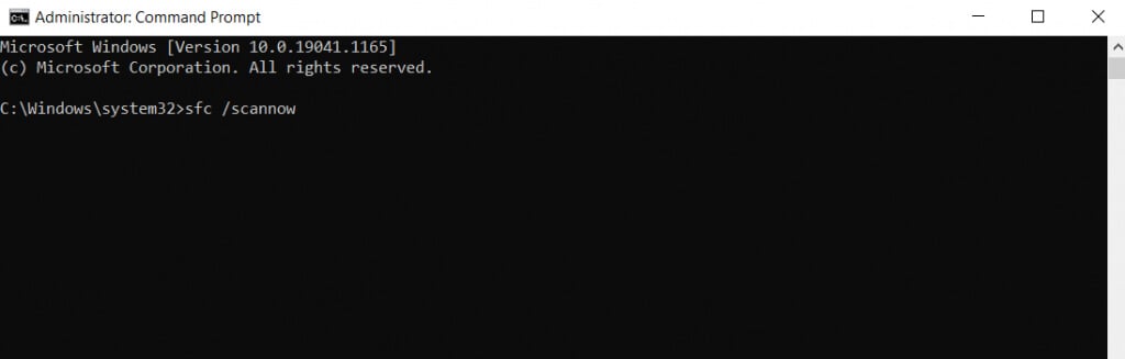 - After DISM has completed the process, it is time to run an SFC scan. Type sfc /scannow and press Enter.