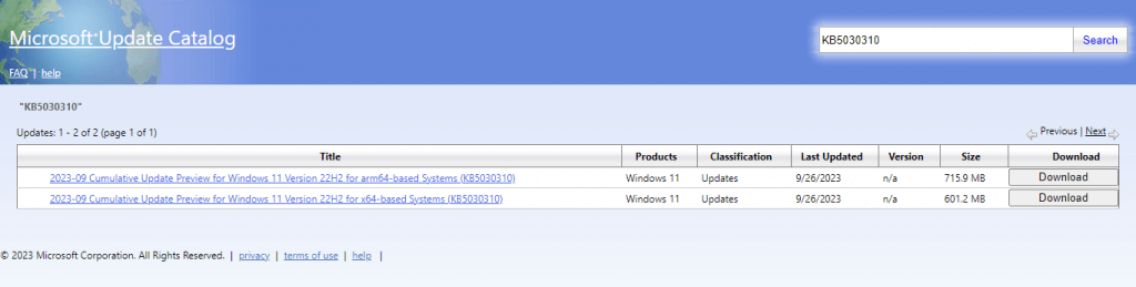 Fix #6: Manually Install Update From Microsoft Update Catalog