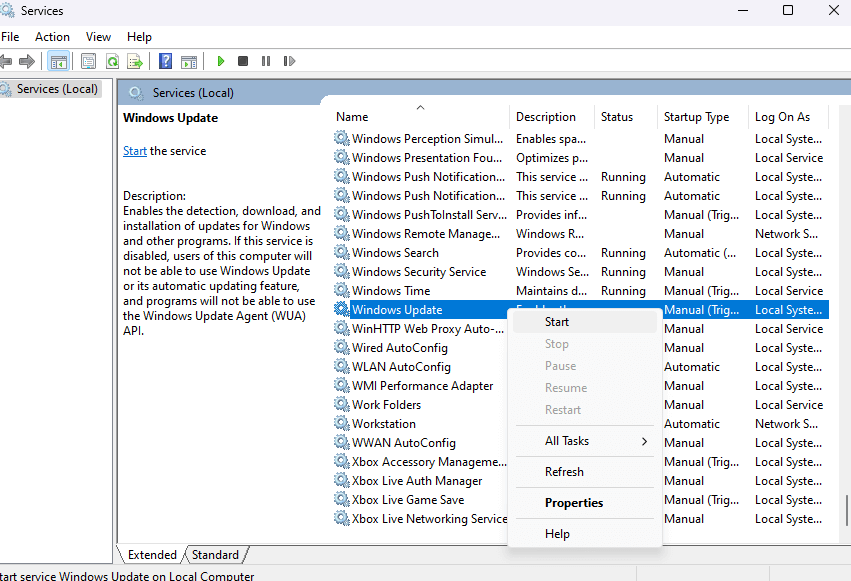 - Right-click on the service and select Start.
