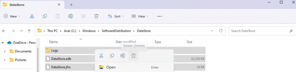 - Head into the DataStore and Download folders and delete everything in them.