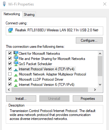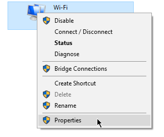 Right-click your network and click Properties.