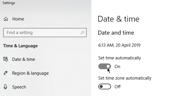 On your taskbar, right-click the time and select Adjust Date/Time. Go to Date & Time > Set Time Automatically and switch it to the On position. Reload your browser and revisit the site. See if the connection not private error is still there.