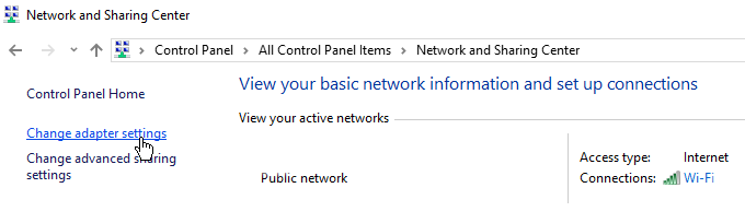 Windows users can update their DNS by opening the Control Panel. Go to Network and Sharing Center > Change Adapter Settings.