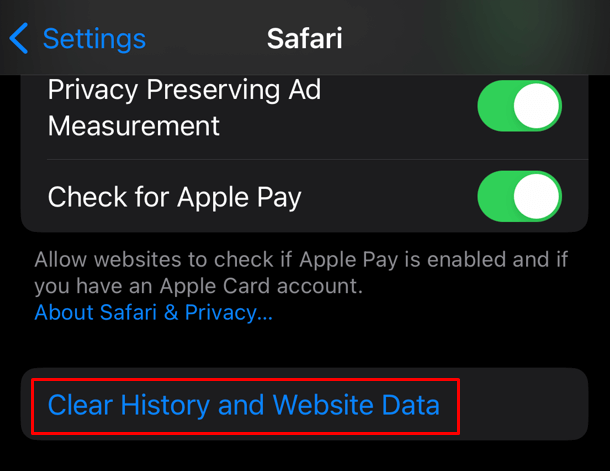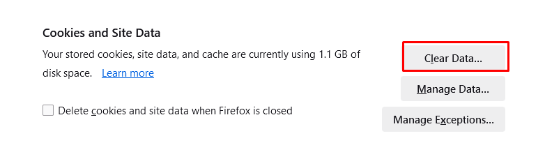 - Scroll down to Cookies and Site Data section and click the Clear Data button.