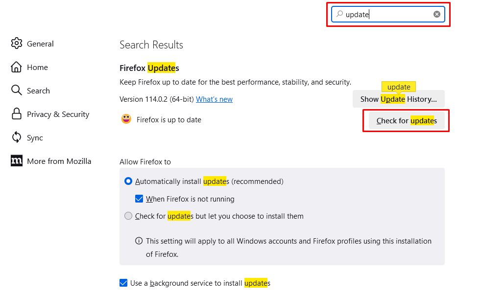 - Wait to see if your browser finds any available updates, and if it does, select Install.
