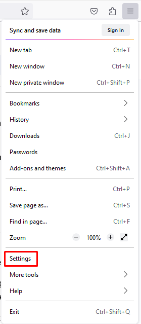 - Open the web browser and click the three lines menu in the upper-right corner.