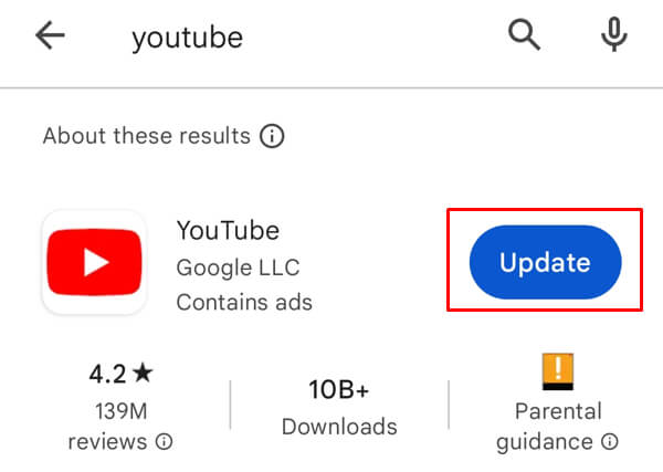 Outdated versions of apps often don’t work properly. You should periodically check if there are any updates. If you’re experiencing the “You’re Offline. Check Your Connection” issue on the app, simply update your YouTube to the latest version available.
