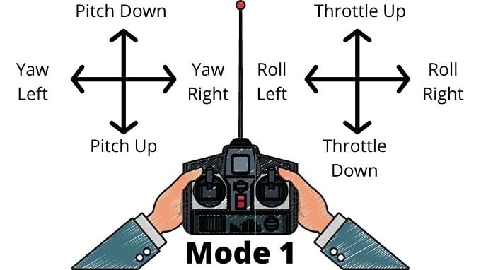 We still have throttle, yaw, roll and pitch. However, now they’ve moved. What’s happened is that throttle and pitch have reversed position, but roll and yaw are still in the same place as with Mode 2.