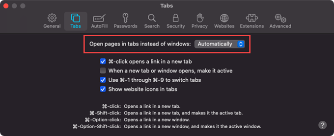 However, it does provide control over links that open in new windows. Go to **Safari **> **Preferences **> **Tabs **and set Open pages in tabs instead of windows to Automatically. That should prompt such links to open as tabs only.