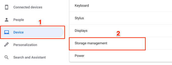 Launch the Settings app, tap Device on the sidebar, and select Storage management.