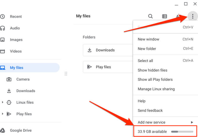 If you enabled offline availability for large files or folders, remove them from your Chromebook and access them from the Google Drive folder instead. This could help you free up a lot of space on your Chromebook.