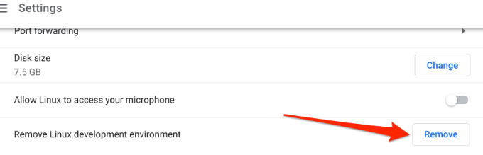 Remove the Linux development environment if you won’t be installing or using any Linux app on your Chromebook.