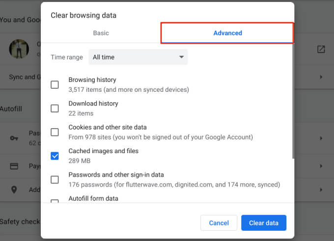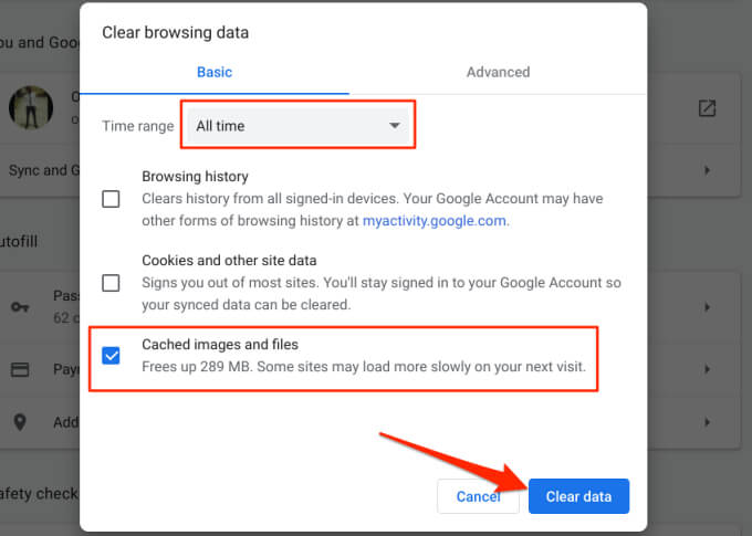 Note that clearing “Cookies and other site data” will free up a huge amount of storage space. However, the operation will sign you out of Google and other accounts connected to Chrome. What you should do instead is delete cookies for individual websites.