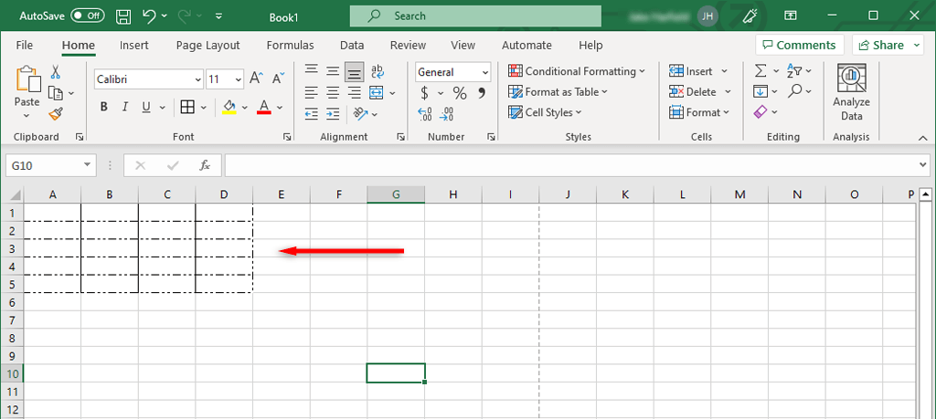 Note: If you’ve set a print area, these dotted lines will also no longer be shown. Instead, the workbook will display a solid line to outline the print area.