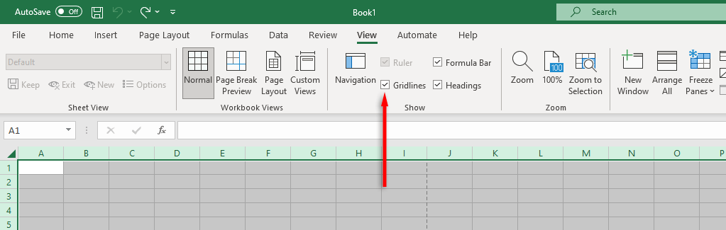 - In the Show section, uncheck the checkbox next to Gridlines.
