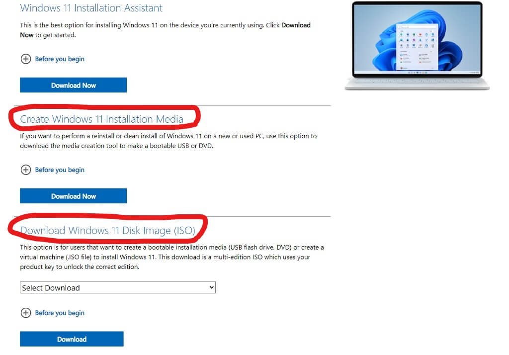 All you have to do is head to the same download page where the Installation Assistant is found. Then either download the Windows 11 Media Creation Tool to automatically create a USB or DVD bootable drive or disc or grab the Windows 11 ISO disk image. If you have the disc image, you can manually burn a copy of Windows 11, which is more useful for installing the operating system on a virtual machine.