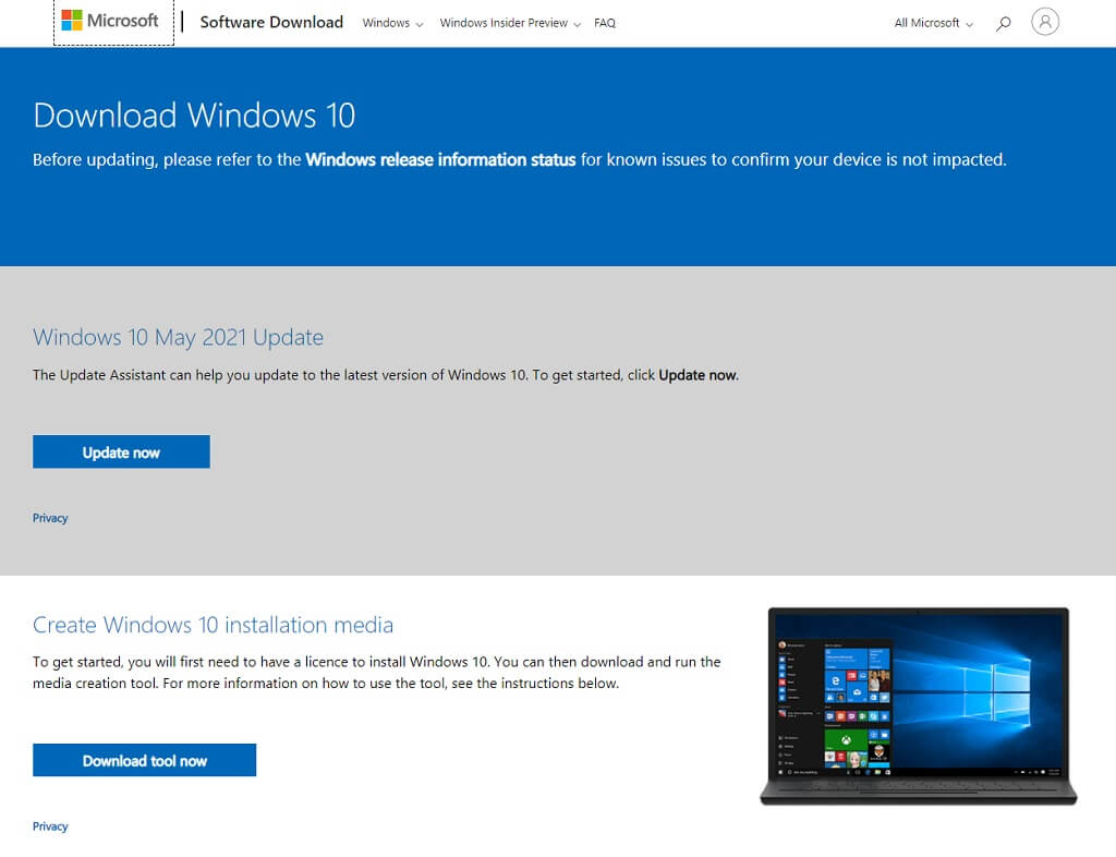 Downloading an ISO or Using the Media Creation Tool