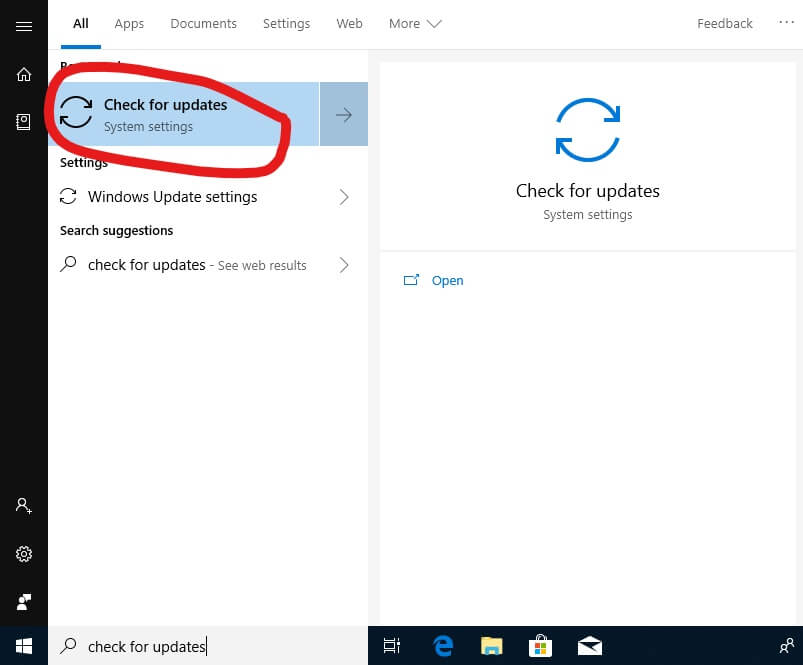 Simply open the Start Menu and search for “Check for Updates.”
