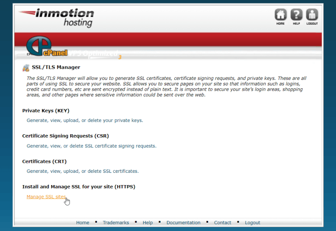 In the SSL/TLS Manager window, select the Manage SSL sites link at the bottom.