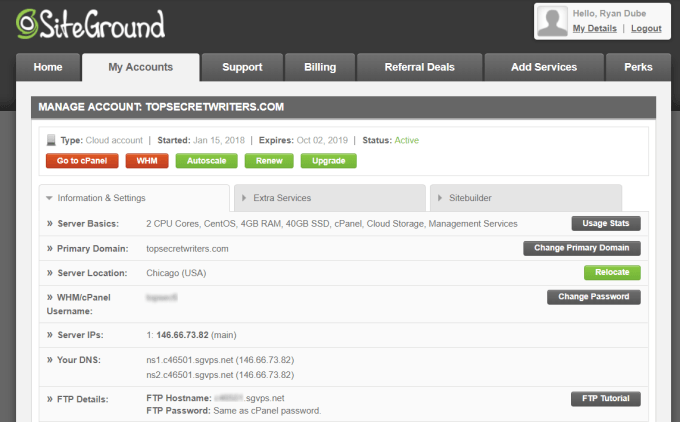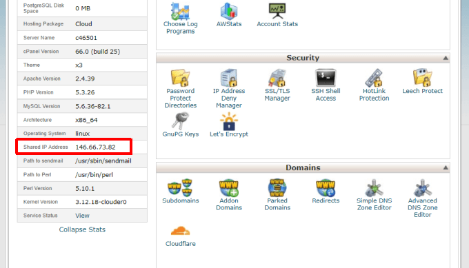 If you don’t see it there, you can also find the server IP address in the left pane of the cPanel tool.