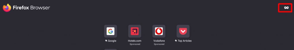 - Open the Firefox app and click on the mask icon in the upper right corner of the browser.