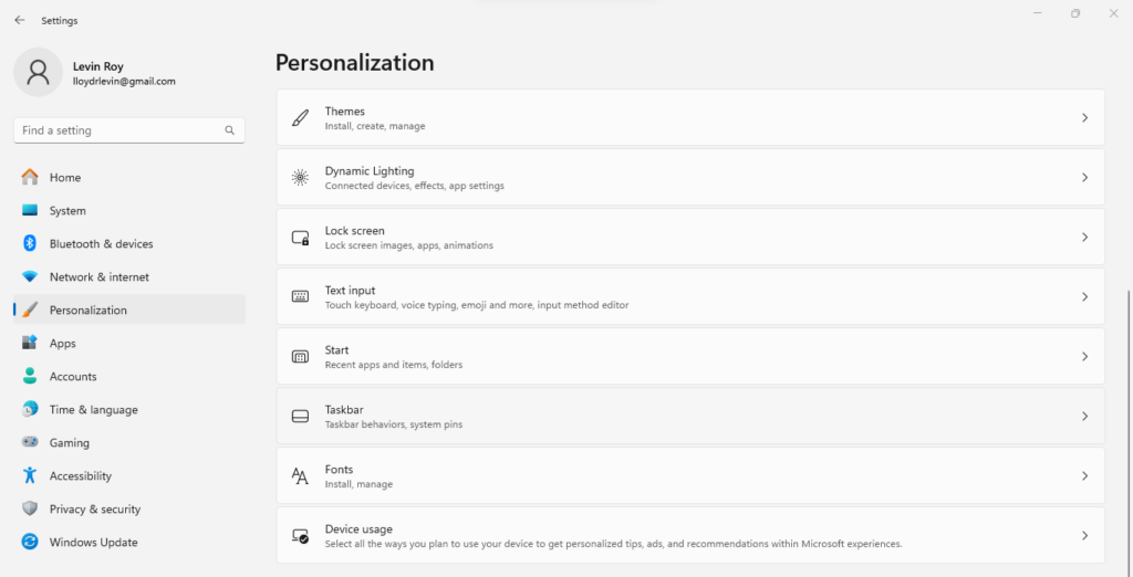- Switch to the Personalization tab from the left.