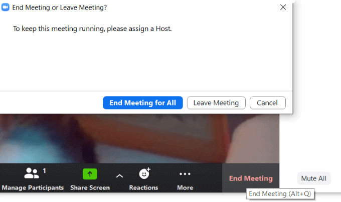 The other option is to end the meeting if you are the host. If you’re recording the meeting, watch for the pop-up showing you where the MP4 file is.