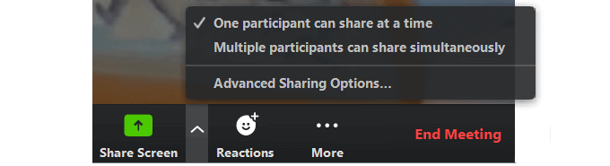 There are also advanced sharing options. Click the up arrow next to Share Screens to see them.