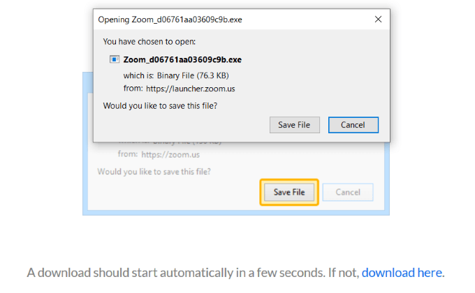 This will download a package to your computer as a standalone app on your PC or Mac. Click Save File to start the download.
