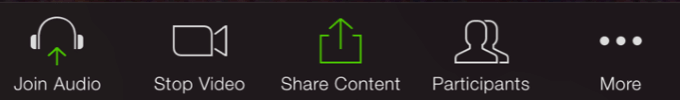 Share a portion of the screen, music or computer sound only, or content from a second camera.