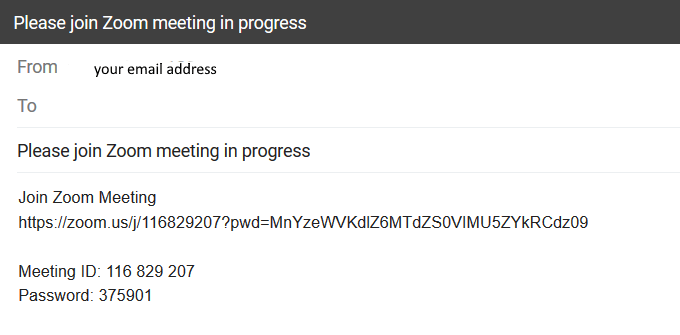 Your message includes the link for recipients to click and join your meeting.