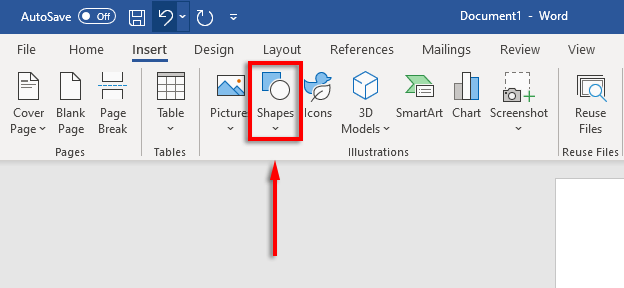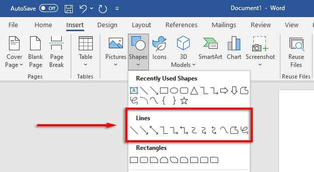 The first method for adding a horizontal line (or vertical line) in Word is to draw it using the shapes option. To do so: