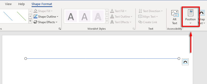 - **Align the line with the text: **Click **Position **to set an alignment for the line. For example, if you want it to move with the text, select In Line with Text.