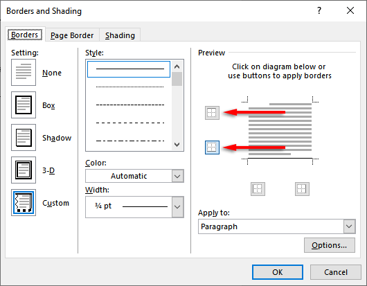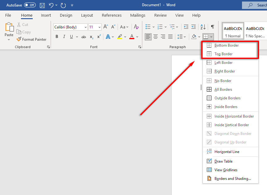 The final way to insert horizontal lines in Word is by using borders. You can use this to easily add borders wherever you like in a page by adding a border to the top or bottom of a paragraph.