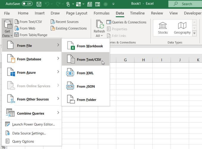 Note: As an alternative, you could also select From Text/CSV directly on the ribbon.