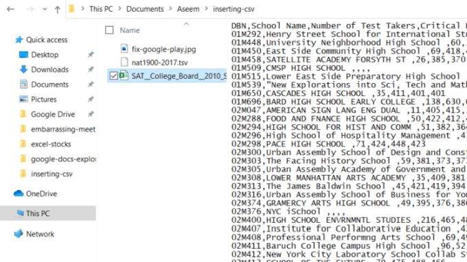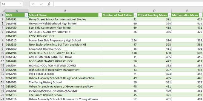 The example below comes from a government dataset containing 2010 SAT College Board student score results.