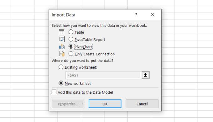 A worksheet isn’t all you can import CSV data into. In the last window, if you select Load To instead of Load, you’ll see a list of other options.