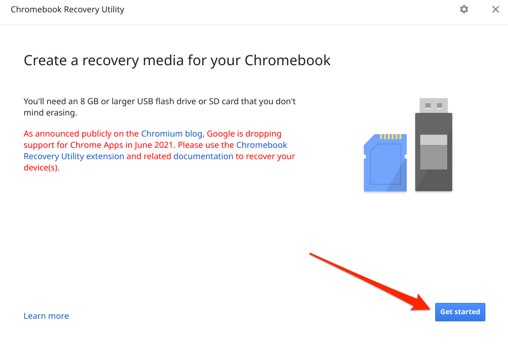 Although installing a third-party Linux distro on Chromebook is pretty straightforward, things can sometimes go south during the process. Therefore, we strongly advise creating a backup of your device using the Chromebook Recovery Utility. This requires an external storage disk with at least 8GB of free storage space.