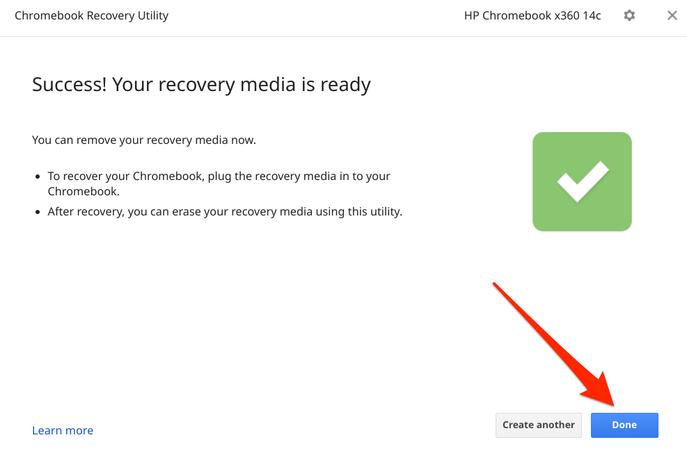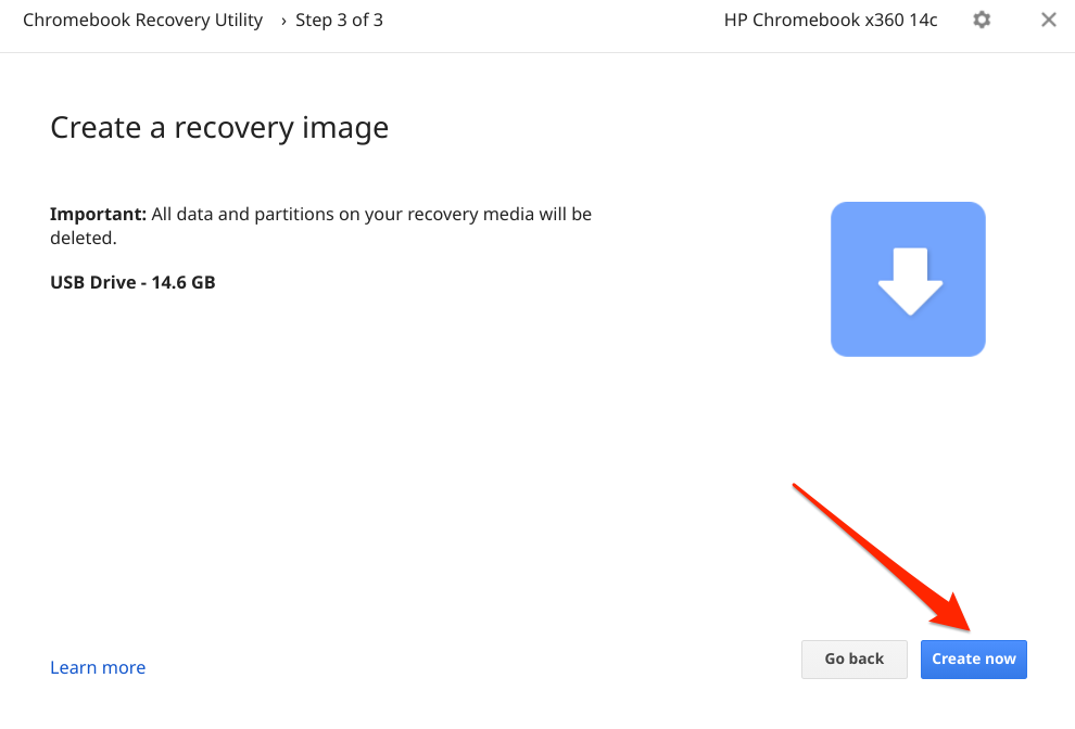 Note that the recovery utility will erase all data and partitions on the drive. So, make sure you back up any important data on the drive to another device before using it as your Chromebook’s recovery disk.