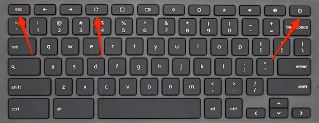 - Press and hold the Esc + Refresh (or F3) keys and hold the Power button.