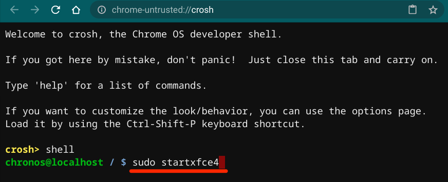 If you’re feeling experimental, you can install Linux with other desktop environments by running the following commands in the Crosh terminal: