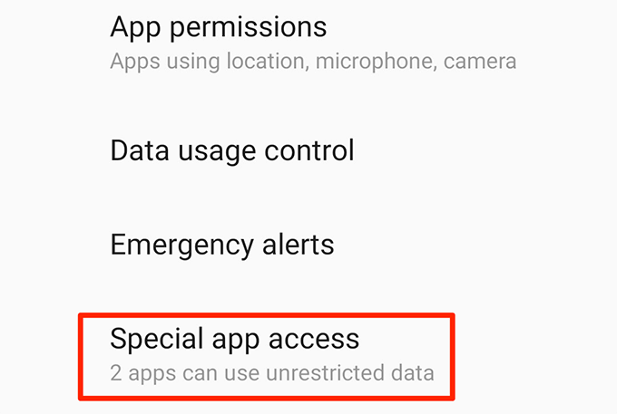 - Scroll down and tap the last option that says **Special app access**.