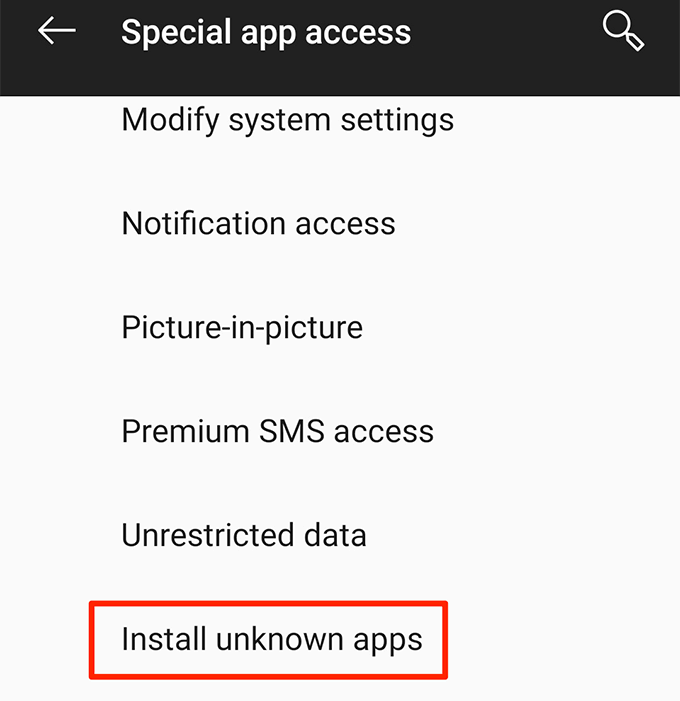 - Select **Install unknown apps **on the following screen.