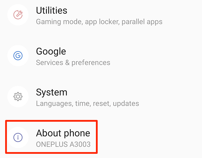 - Scroll down and tap the About phone option.