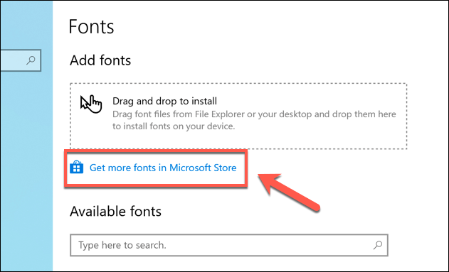 If you’re struggling to find new fonts you like, you may be able to find them in the Microsoft Store, Windows 10’s built-in app store. Rather than searching for these manually, you can access the list of available fonts for download directly from your **Windows Settings **menu.