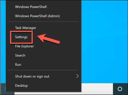 - To access this menu, right-click the Windows Start menu and press the Settings option.