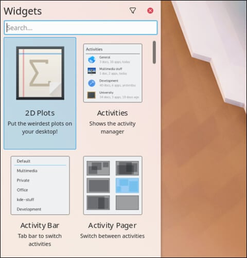 - Add widgets: KDE Plasma Desktop allows you to add widgets to your desktop, such as a clock or weather widget. To add a widget, right-click on the desktop and select Add Widgets, then choose the widget you want to add and drag it to the desktop.